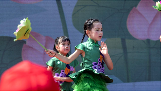 ▲在“集缘荷苑”荷花周开幕式幼儿园小朋友的精彩演出。(摄影:唐培穗)