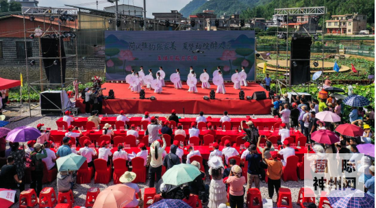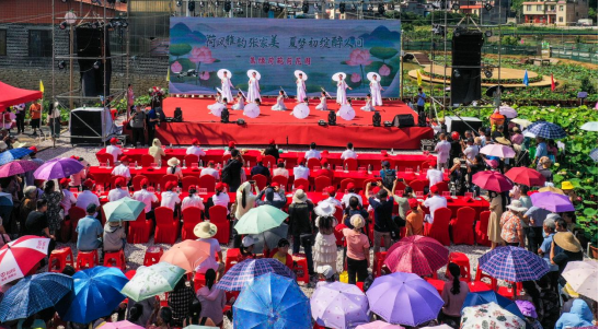 “荷风雅韵”文艺演出更是将活动推向高潮,当地幼儿园小朋友演出的《荷塘月色》,以及初中学生的精彩节目等,展现荷文化的独特魅力,让游客在光影交错中感受荷花的清雅与浪漫。