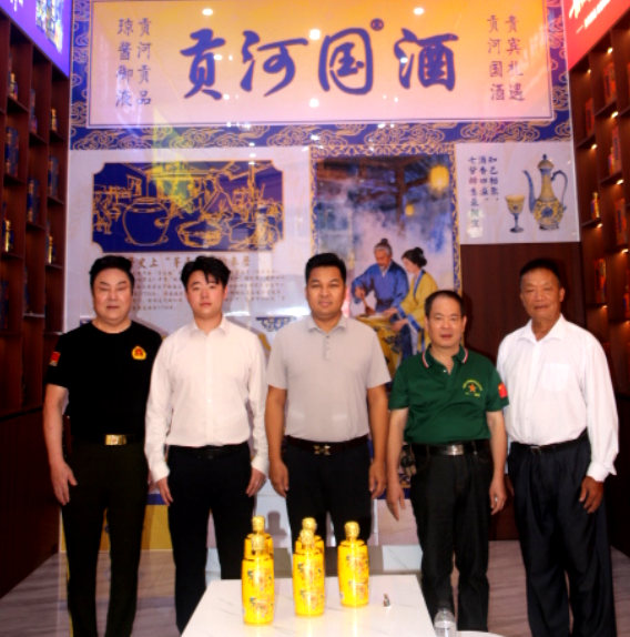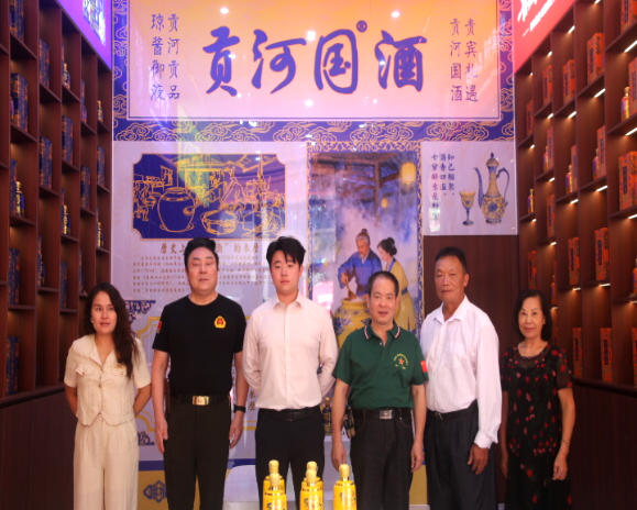 2025年10月20日,广西八一退役军人文工团团长刘戈(左一)先生,广西八一退役军人文工团副团长兼宣传部部长、全球美丽网、中华产品网、国际神州网、世界工艺美术网副总编唐国宣(右二)采访贡河国酒(广西)体验中心总经理、广西晟文建设工程有限公司执行总裁谢文杰(左二)先生,红牌集团贡河国酒投资人、贵州贡河国酒有限公司全国运营总监、贡河国酒(广西)有限公司董事长刘世雄(中)先生。田东县某企业总经理唐绍政先生,南宁市某企业总经理唐新秀女士,本网编辑黄安妮女士等陪同。