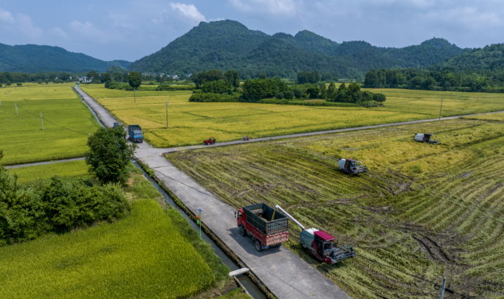 稻田旁,一台无人机低空掠过,精准喷洒农药;不远处,4台高速插秧机在刚收割的田块中往返作业,秧苗整齐划一地插入泥土。“过去‘双抢’靠人工,全家老小齐上阵,现在靠机器,效率翻了几番!”务工农民老李擦着汗笑道。